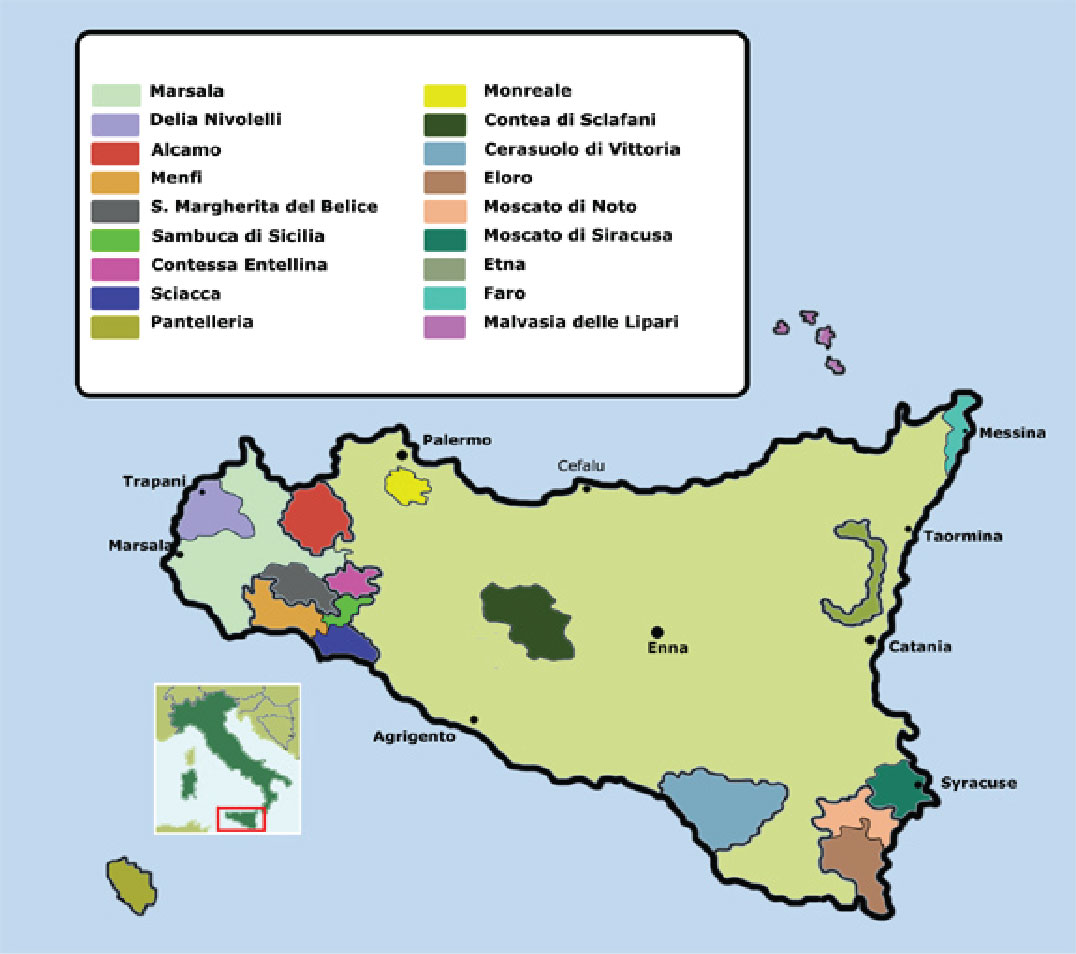 Marsala is made on the Italian island of Sicily in both sweet and dry styles. Catarratto, Grillo, and Inzolia are the grape varietals used and the blend is fortified during fermentation. Marsala production began in Sicily when a British lover of Sherry, Port, and Madeira named John Woodhouse noticed that Sicily had a good climate for fortified wine production. Marsala can be fortified in two different ways: Grape spirit can be added or late picked must mixed with alcohol (sifone) can be added. Marsala can also fall into three color catergories: Oro (golden) Ambra (amber- sweetened by mosto cotto or concentrated must), and Rubino (ruby).
